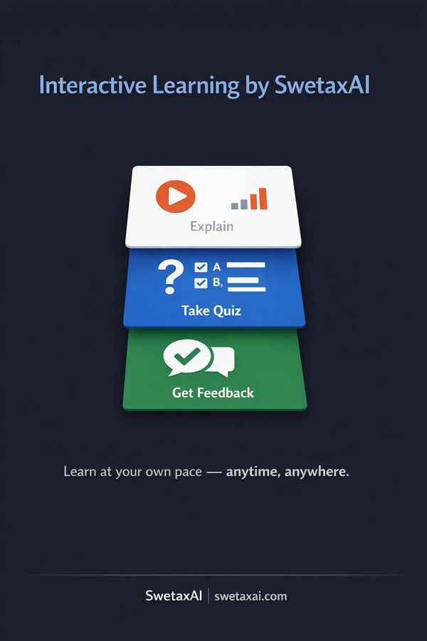 Our interactive lessons are designed for school students worldwide, making complex ideas simple through visual explanations, real-time quizzes, and immediate feedback. With SwetaxAI, every learner progresses at their own pace. Discover the joy of learning by doing — only with SwetaxAI, where education meets innovation.
